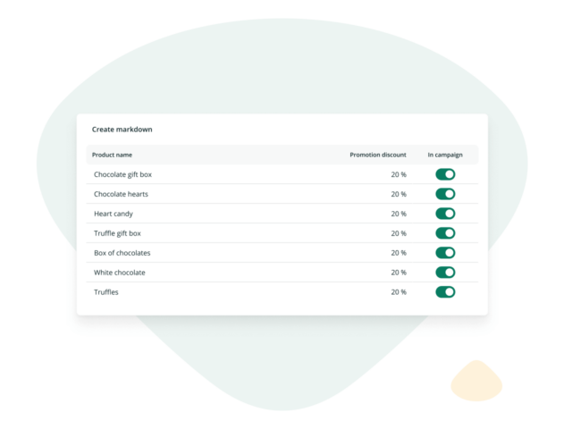 El software de descuentos de RELEX permite la configuración de escalado de precios y reglas de redondeo, asegurando que las recomendaciones encajan perfectamente con su estrategia de precios.