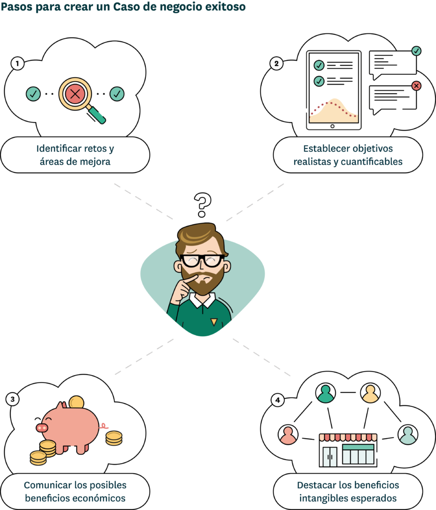 El caso de negocio ayuda a lograr una implementación tecnológica exitosa. Un caso de negocio bien fundamentado permite conseguir las metas al definir objetivos claros y centrarse en los indicadores clave de rendimiento que generarán mayor valor para la empresa.