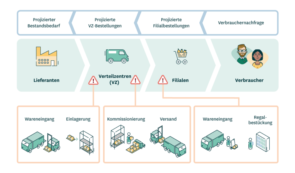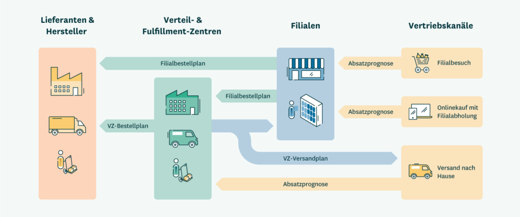 - Verbessertes Kapazitätsmanagement, einschließlich einer effizienteren Kapazitätsauslastung der Filialen und Verteilzentren und der Reduktion von Lieferspitzen in den Filialen um bis zu 30 Prozent.