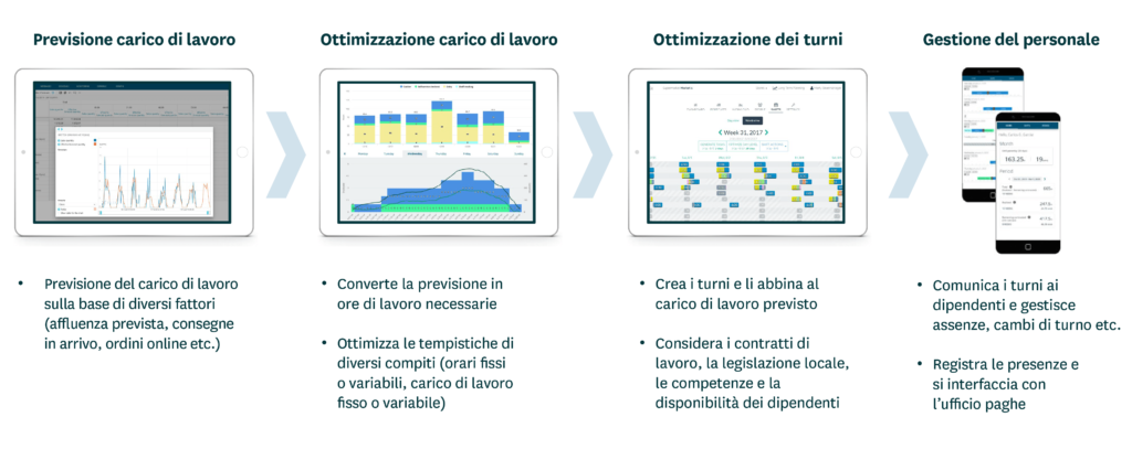 Il personale è una risorsa fondamentale nel retail, ma anche uno dei costi maggiori, pari al 10-20% circa del fatturato. Una pianificazione più accurata dei turni di lavoro consente di ridurre le ore in eccesso e quindi di risparmiare milioni di euro l’anno. Al tempo stesso, favorisce la soddisfazione e la produttività dei dipendenti, un carico di lavoro gestibile e quindi un elevato livello di servizio ai clienti.