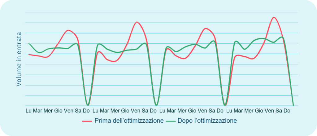 Questo carico di lavoro totale deve quindi essere ottimizzato in modo che le mansioni più urgenti, come il servizio ai clienti, vengano effettuate quando serve, e quelle meno urgenti vengano pianificate di conseguenza per consentire turni di lavoro equilibrati.