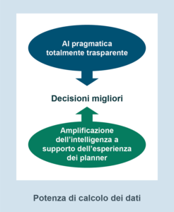 L’esperienza umana è importante, ad esempio, quando i retailer pianificano nuovi formati di punti vendita o nuovi servizi. Allo stesso modo, molti problemi complessi vengono risolti al meglio dai planner in carne ed ossa, che discutono le opzioni disponibili con i category manager o i fornitori. Infine, l’esperienza umana è essenziale per tradurre la strategia aziendale di ogni azienda in obiettivi dettagliati, che controllano il modo in cui l’intelligenza artificiale ottimizza i risultati.