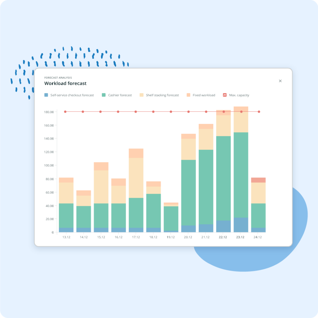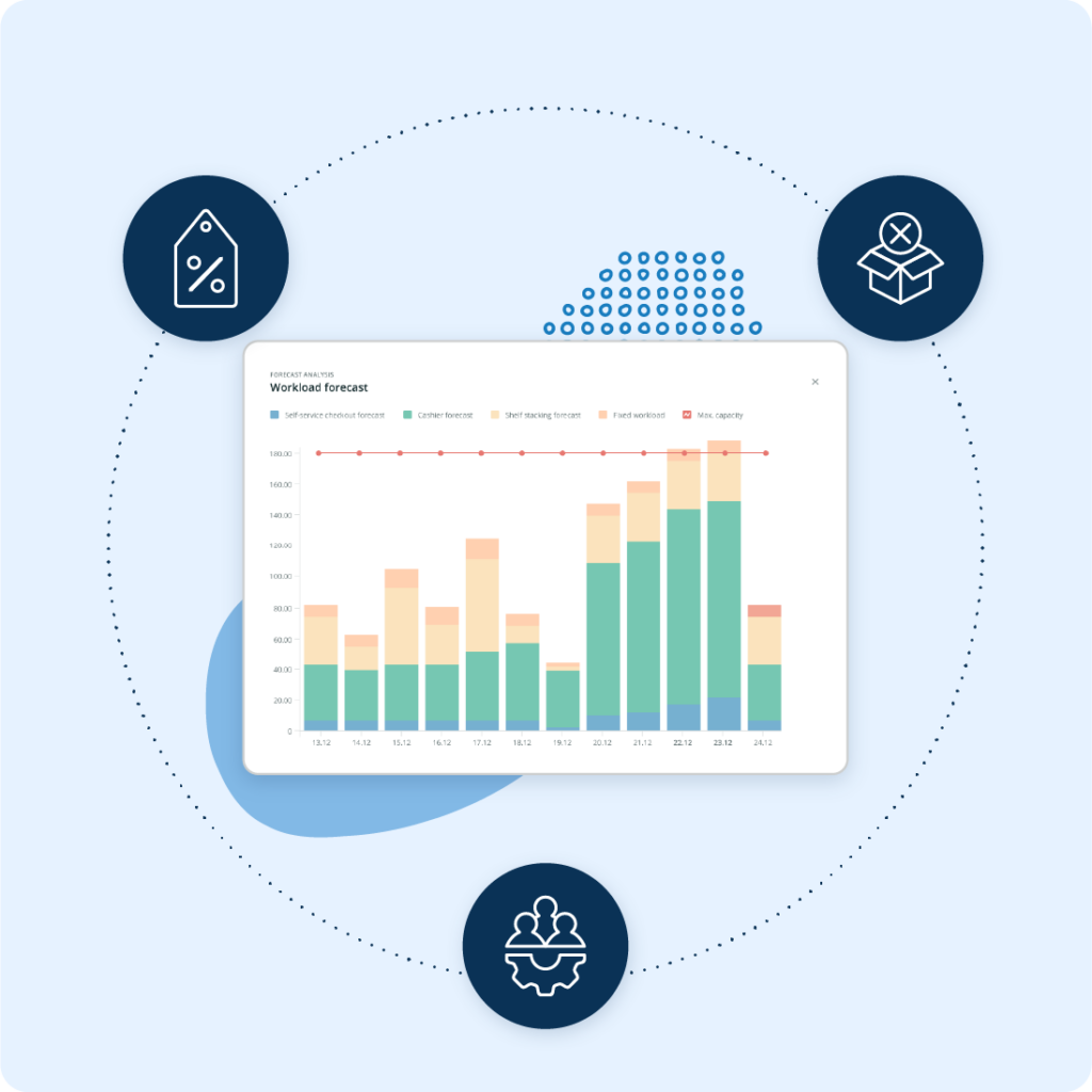 Identify under- and overstaffing well in advance with a solution that forecasts upcoming workload peaks and troughs. With both short- and long-term visibility, you can address staffing challenges with enough time to ensure efficient store and DC operations.