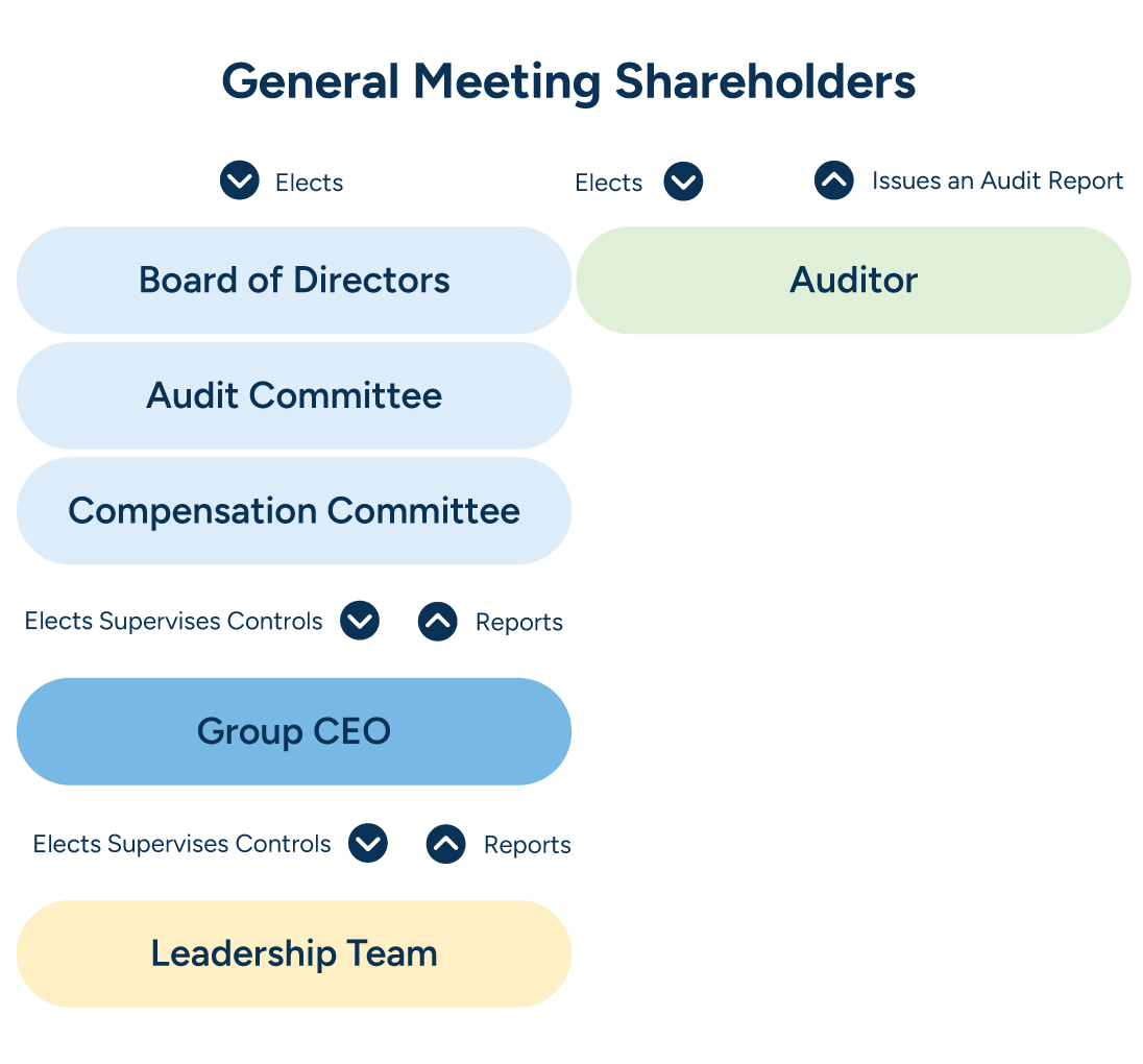RELEX has adopted a one-tier governance model in which shareholders hold the greatest decision-making power. They exercise it at the Annual General Meeting, when shareholders vote to elect the Company's Board of Directors as well as its Auditor. At the General Meeting, the Board of Directors submits proposals regarding the number of seats, election processes, and board member payment to voting shareholders. As the shareholder-elected controlling body, the Auditor plays an important role as well.
