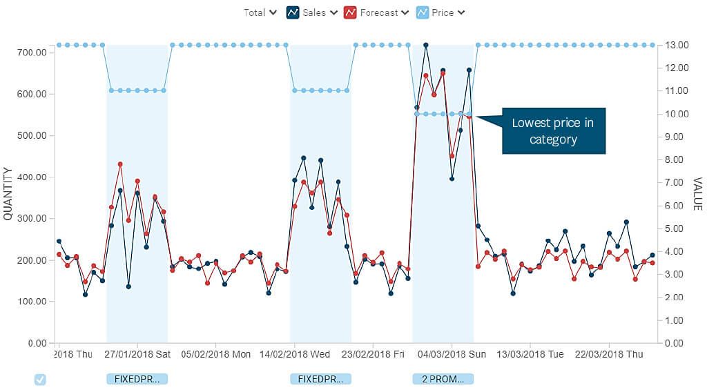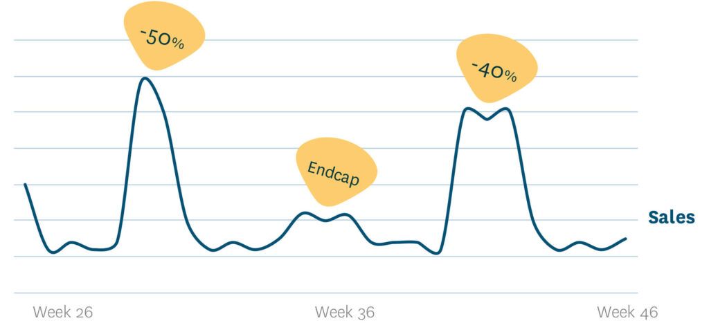 Las propias decisiones del negocio como retailer, son también una importante fuente de variaciones en la demanda, desde promociones y cambios de precio a ajustes en cómo se muestran los productos en las tiendas. A parte del hecho de que las empresas normalmente planifican y controlan ellas mismas estos cambios, muchos en el sector son incapaces de predecir su impacto con exactitud.