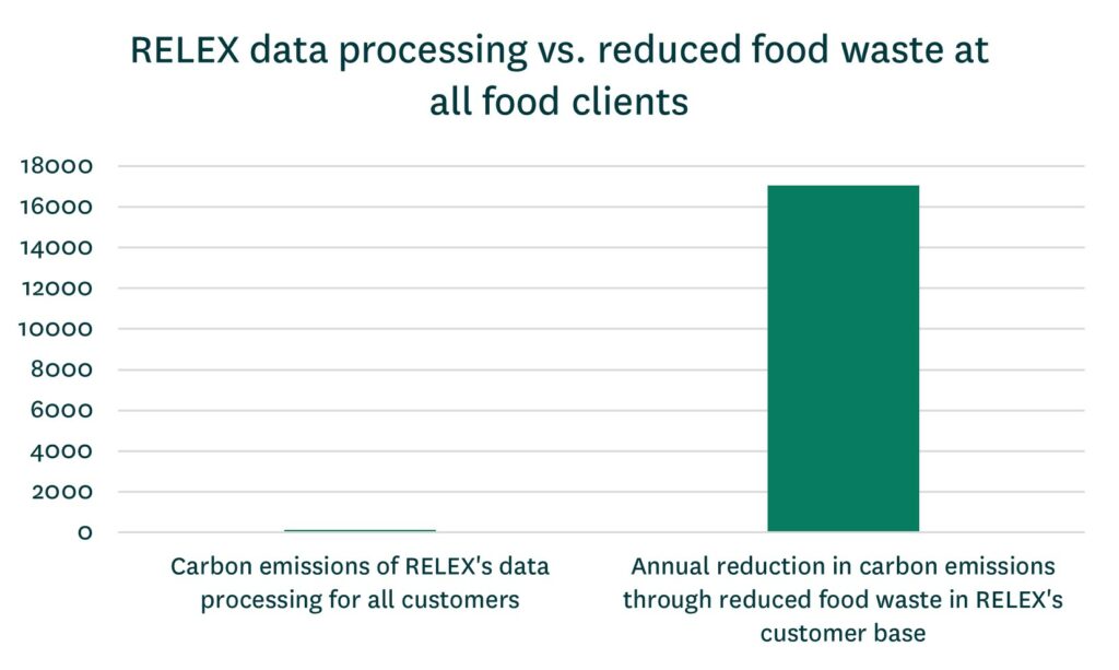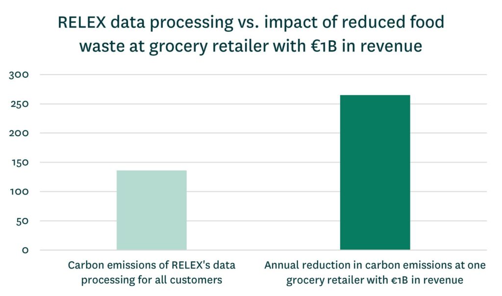 Además, hemos visto los efectos de la mejora del almacenaje y el transporte en la huella de carbono de nuestros clientes. A través de una planificación del reabastecimiento efectiva, por ejemplo, el retailer Bünting pudo reducir el kilometraje de distribución y las emisiones correspondientes en un 27%. Como el impacto de carbono de la distribución depende en gran medida de los vehículos utilizados, el impacto del transporte es incluso más difícil de medir que el impacto de la reducción del desperdicio de alimentos, pero estamos seguros de que RELEX también podrá avanzar en esa área.