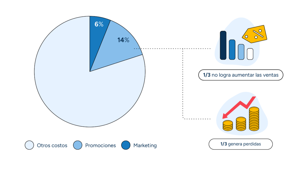 En un seminario web sobre los puntos débiles de la promoción minorista, compartimos información del mundo real de nuestras conversaciones con los retailers. Esa investigación muestra que las promociones y sus tareas de marketing asociadas representan aproximadamente el 20% de los costos operativos de los retailers. Agregue a eso los hallazgos de que un tercio no logra aumentar las ventas, y hasta un tercio en realidad genera pérdidas, y es fácil ver por qué los minoristas deben enfocarse en optimizar la estrategia de planificación y promoción.