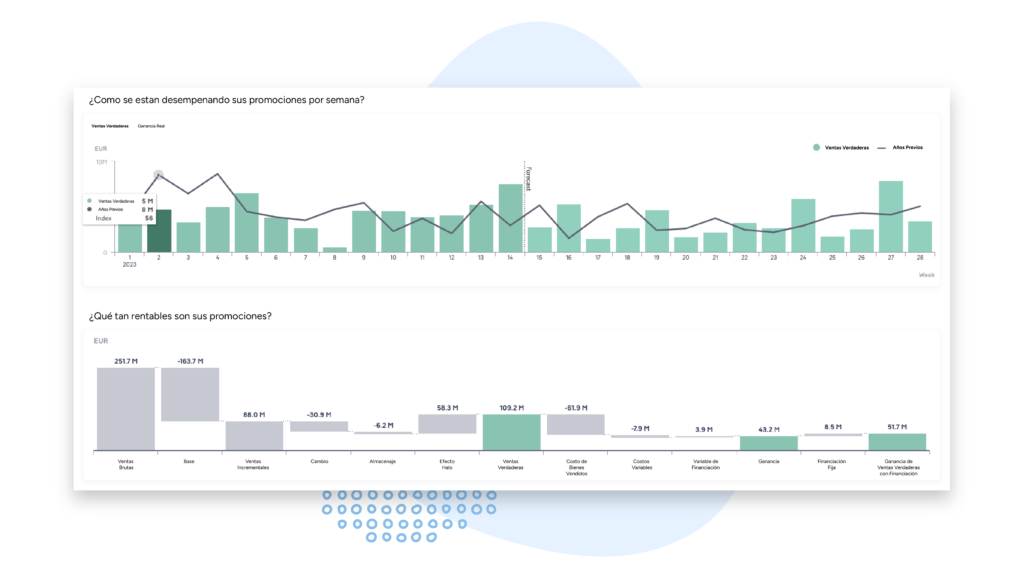 - Aumento de +3-6% en los márgenes de beneficio de los productos promocionados al eliminar las promociones de bajo rendimiento.
