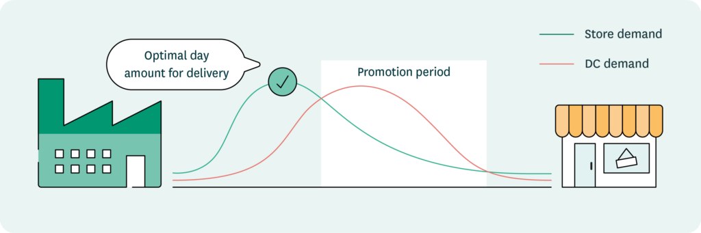 After agreeing to the constraints, the next step is reviewing sales and delivery plans to identify potential bottlenecks, which can emerge anywhere in the supply chain throughout the holiday season. Potential bottlenecks include overly large deliveries adding to store congestion on busy days, days when warehouse staff face more order lines than they can pick, or days when a warehouse receives more frozen products than it can store.