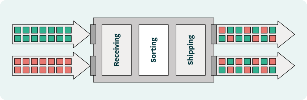 Suppliers of short-shelf life perishables often make several daily deliveries to the same distribution centers. This is partly to guarantee freshness and partly to level out volumes.