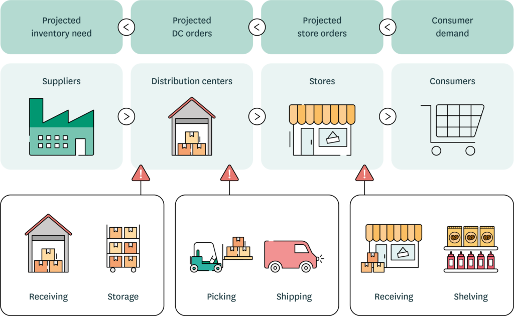 To identify and proactively resolve these bottlenecks, retailers must understand how the forecasted demand will impact inventory, capacity, and resource requirements throughout their supply chains.