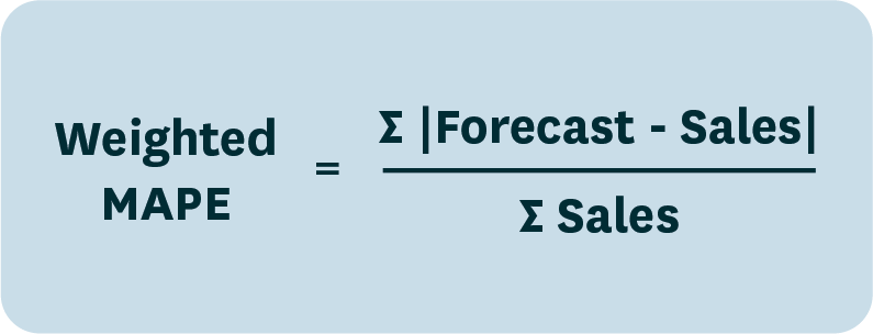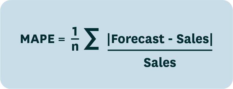 Mean absolute percentage error (MAPE) is akin to the MAD metric, but expresses the forecast error in relation to sales volume. Basically, it tells you by how many percentage points your forecasts are off, on average. This is probably the single most commonly used forecasting metric in demand planning.